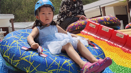 3、一个单人滑圈仅限一人乘坐(双人滑圈可乘坐两人)。